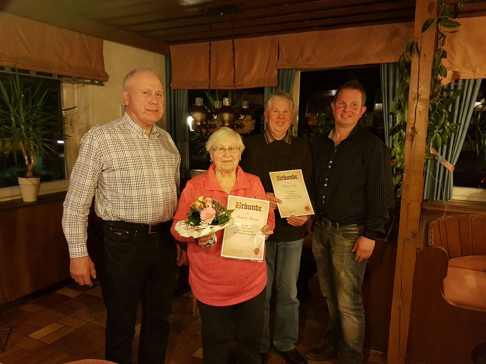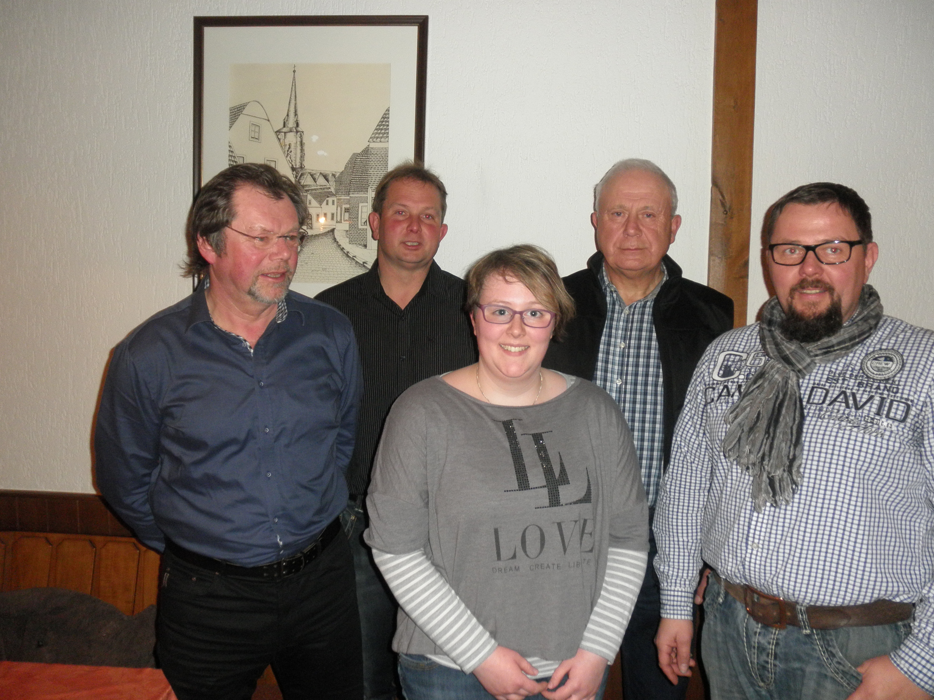 Foto: "Gruppenbild mit Dame" (von links) Christoph Sicking, Thomas Friedrich, Denise Voß als neue Schriftführerin, Bernhard Olbers und Jörg Voß