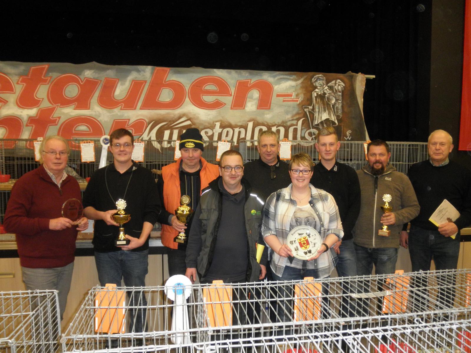 Meister Tauben: 1. Jörg Voß mit Aachener Lackschildmövchen, schwarz, 2. Ernst Liemann mit Italienischen